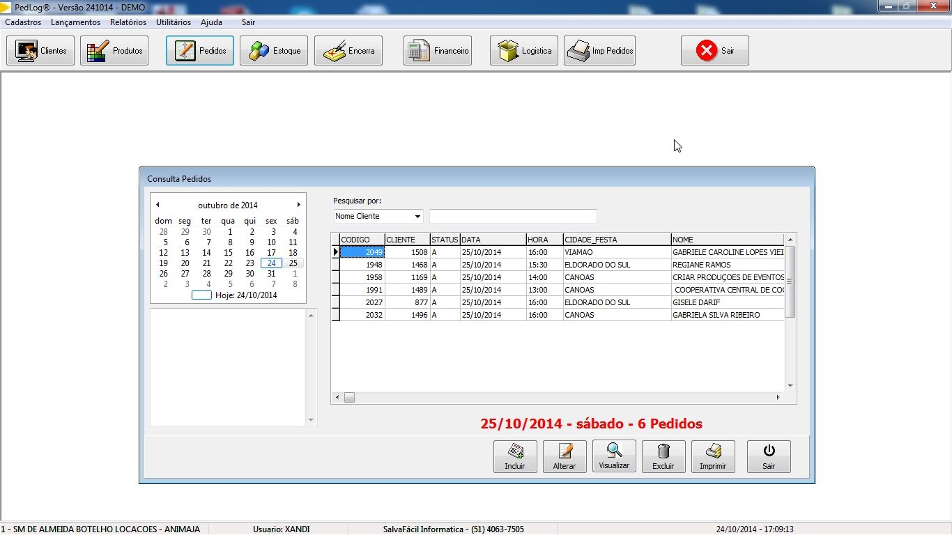 de consulta dos pedidos, basta clicar no calendário e o