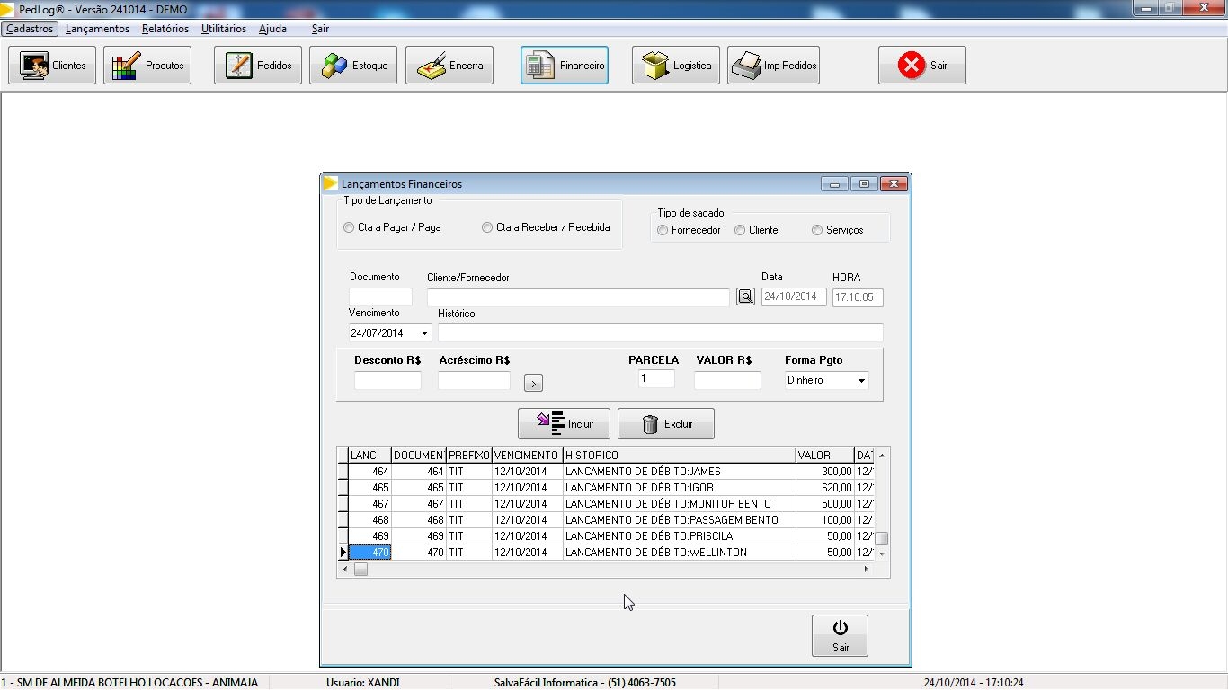 Tela de lançamentos financeiros