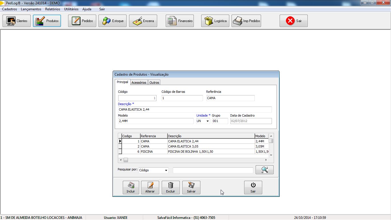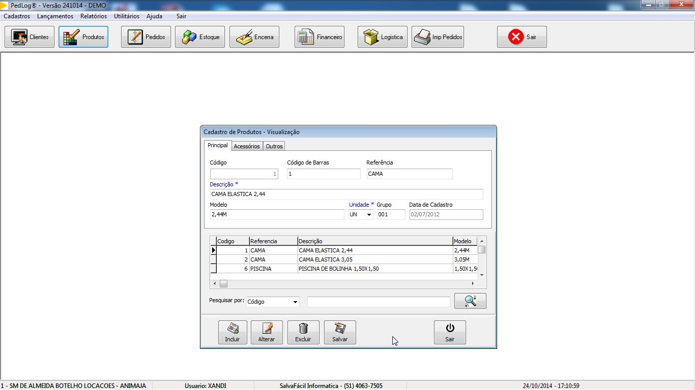 Tela de caddastro de produtos, permite o desmembramento do produto por peças para que facilite a montagem da carga por picking