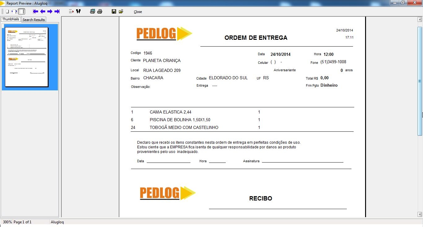 Emissão da ordem de entrega